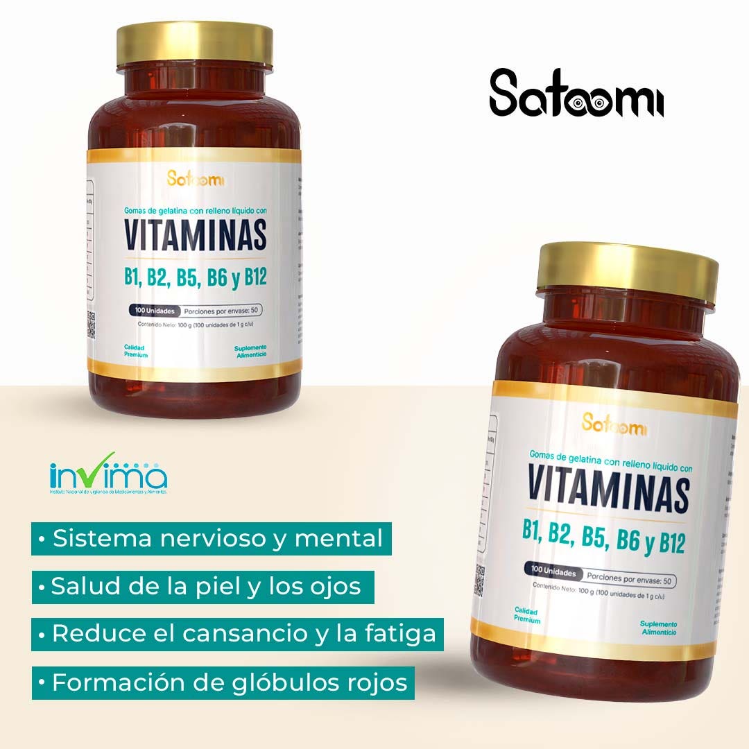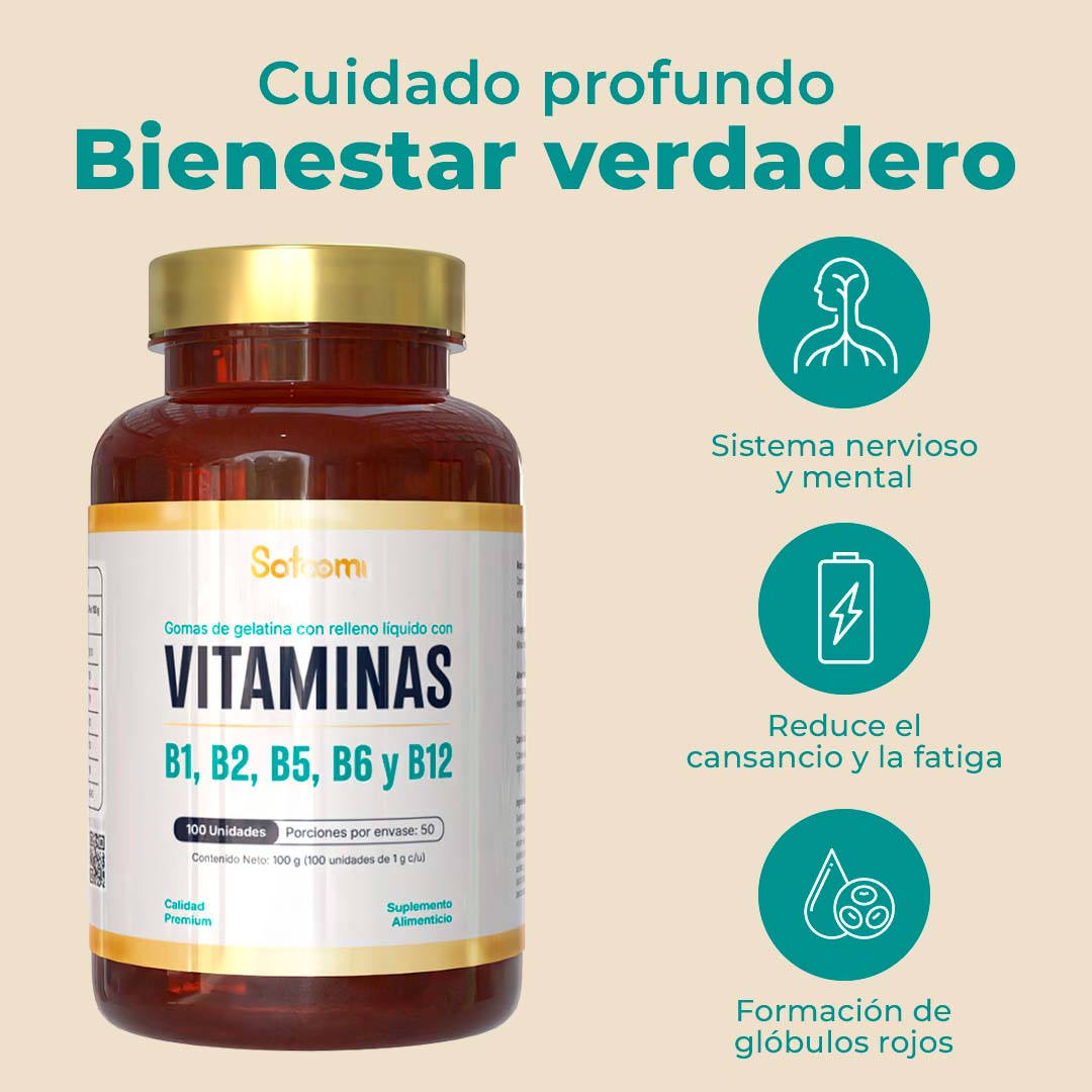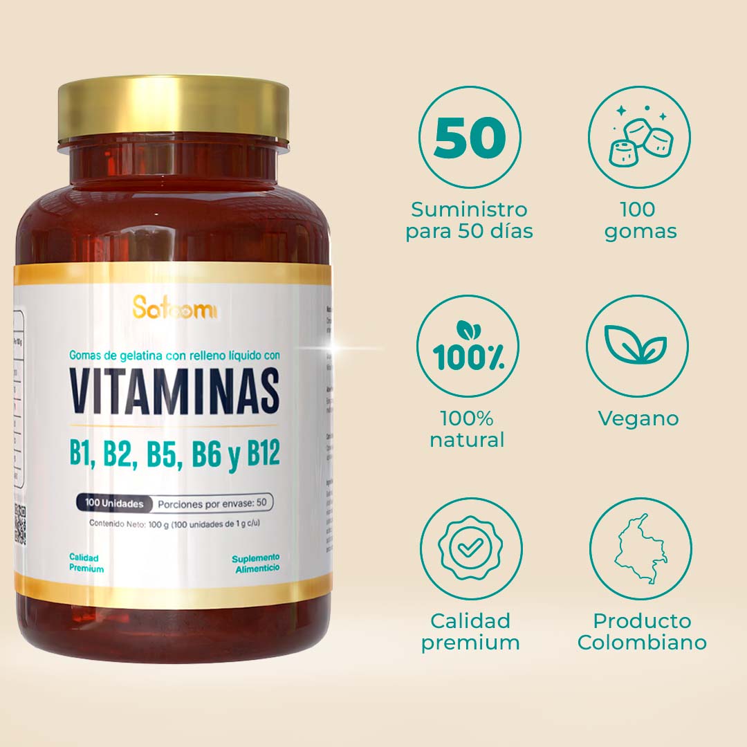 Gomas de gelatina con Vitaminas B1, B2, B5, B6 y B12 - Apoyo al sistema nervioso, formación de glóbulos rojos y aumento de energía.