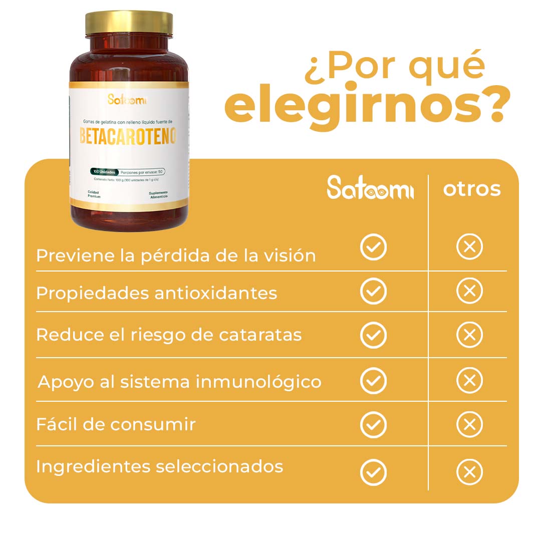 - Componente clave: el suplemento está fabricado con Betacaroteno, un componente esencial conocido por apoyar la salud ocular, protección de la retina y prevención de cataratas. El uso regular de betacaroteno puede ayudar a mantener un estado de salud óptimo.