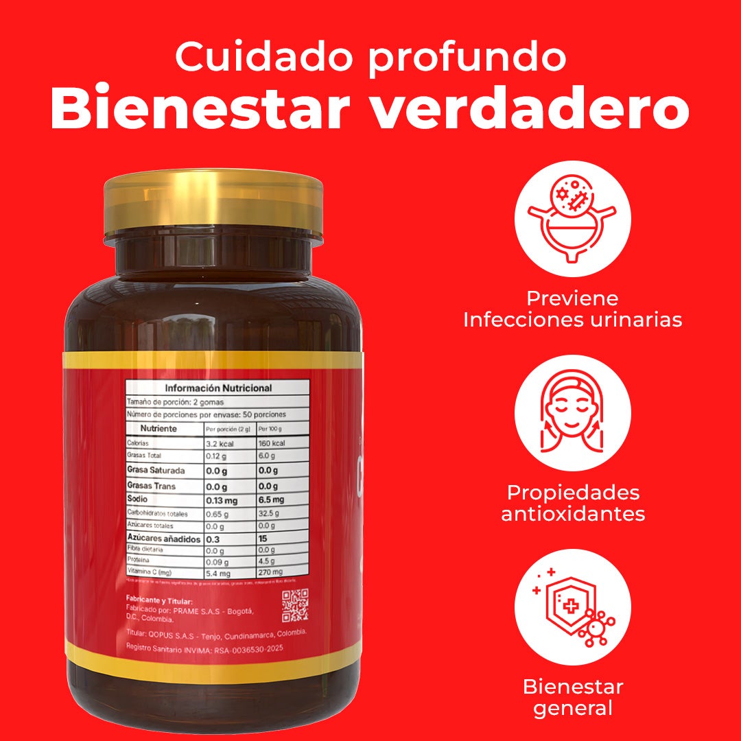 - Fórmula enfocada: Las gomas de gelatina con Cranberry contienen un solo ingrediente clave, proporcionando un apoyo específico para el bienestar general.