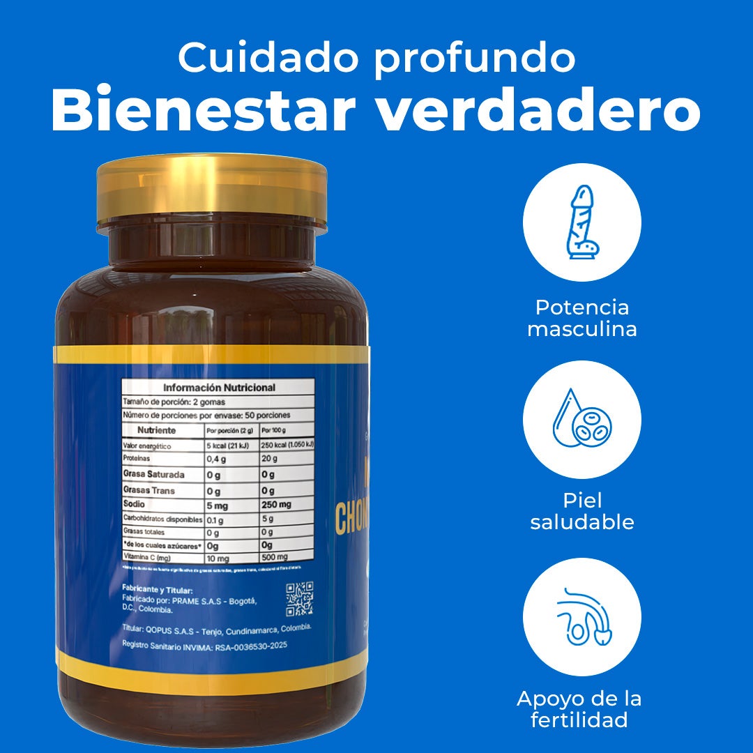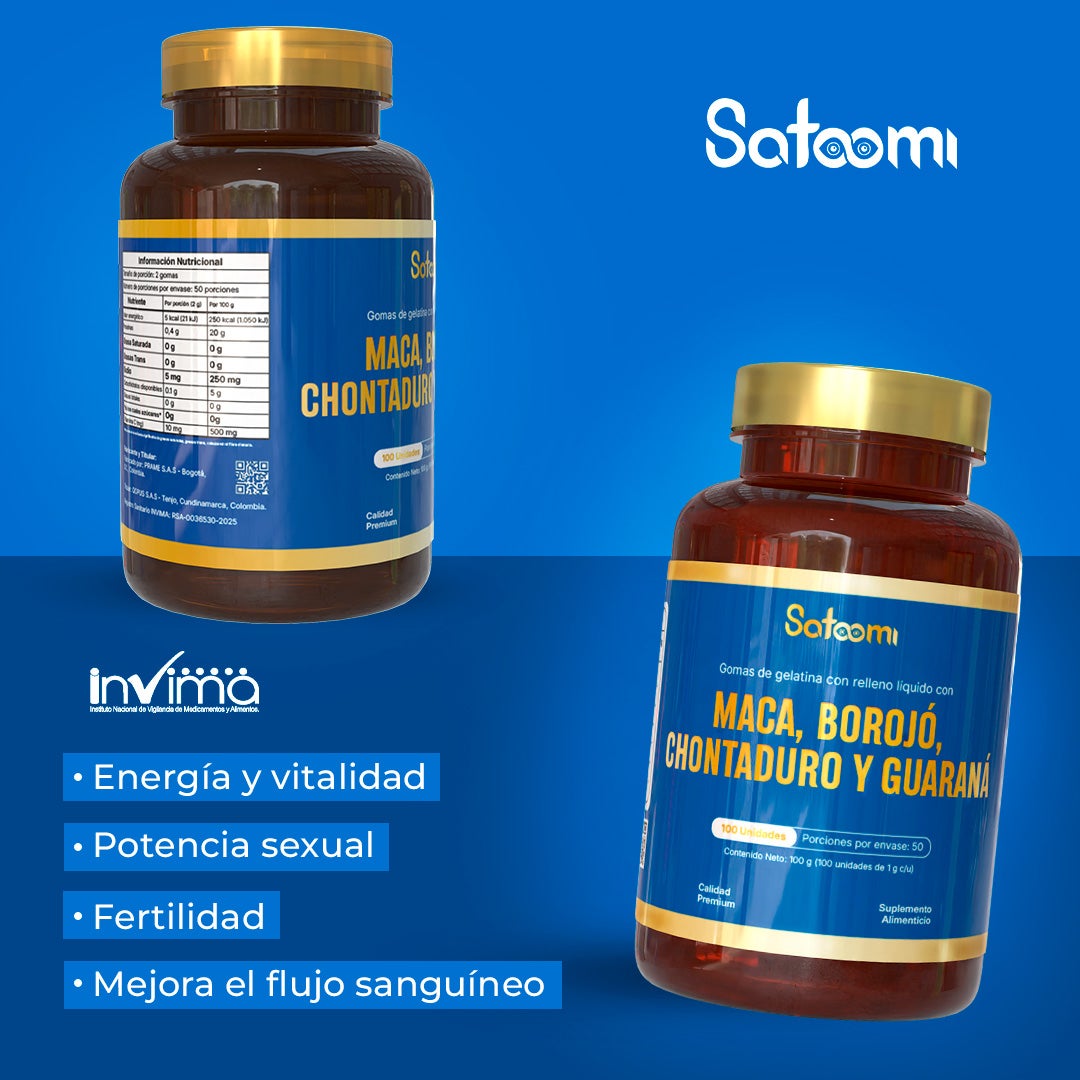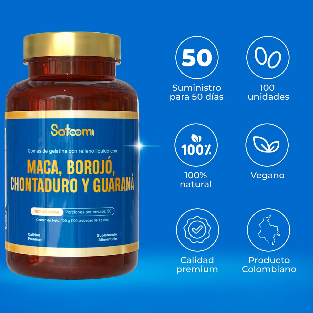 Gomas de gelatina con Maca, Borojó, Chontaduro y Guaraná - Apoyo a la potencia masculina.